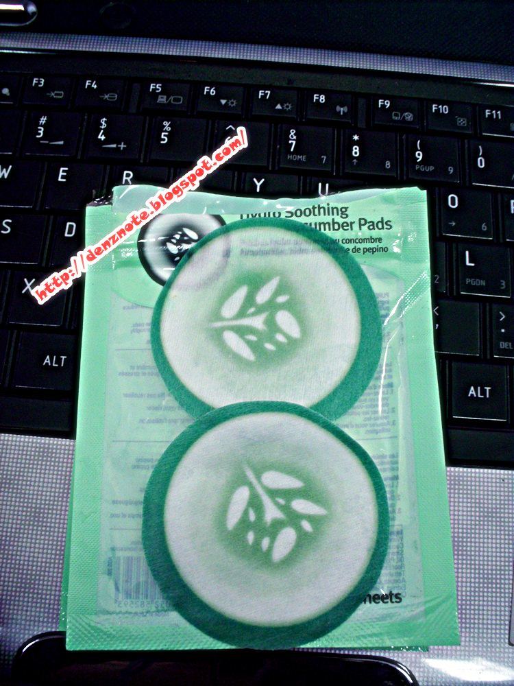 Dikemas dalam pelastik berwarna hijau dengan isi sebanyak 10 pads didistribusikan oleh PT cakra daya makmur jakarta dengan nomor registrasi di BPOM CL 1003701942 yang paling unik menurutku adalah dari potongan pads yang berbentuk buah timun dengan pinggiran berwarna hijau dan ada biji mentimun juga lho di tengahnya ini memberikan kesan bahwa ini kayak timun beneran he,,,, dan aromanya memang benar - benar bau mentimun asli lho..